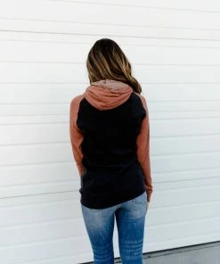Best Sale ๐ Ampersand Ave ๐ฉ women Canyon Drive Doublehood Sweatshirt in Black/Washed Rust ๐