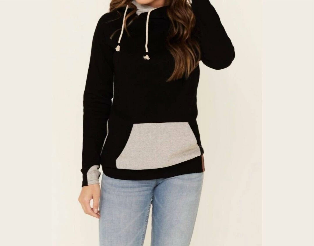 Cheap โจ Ampersand Ave ๐ฉ women Double Hooded Hoodie in Black Herringbone โจ