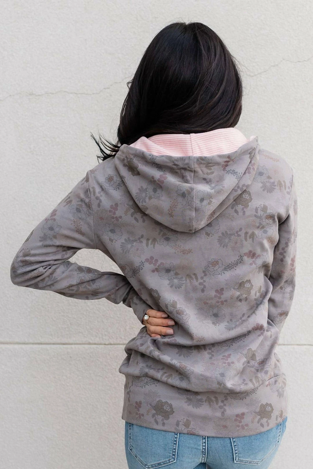 The stretchy fabric provides triple stretch and TTS for a slim fit, but size up for a looser, more relaxed fit. Finding paradise has all the classic features of a hoodie – kangaroo pocket, ribbed cuffs and hem, and an ampersand on the chest. But what really sets this hoodie apart are its intricate floral details on the sleeves and back.Triple stretchNursing friendly