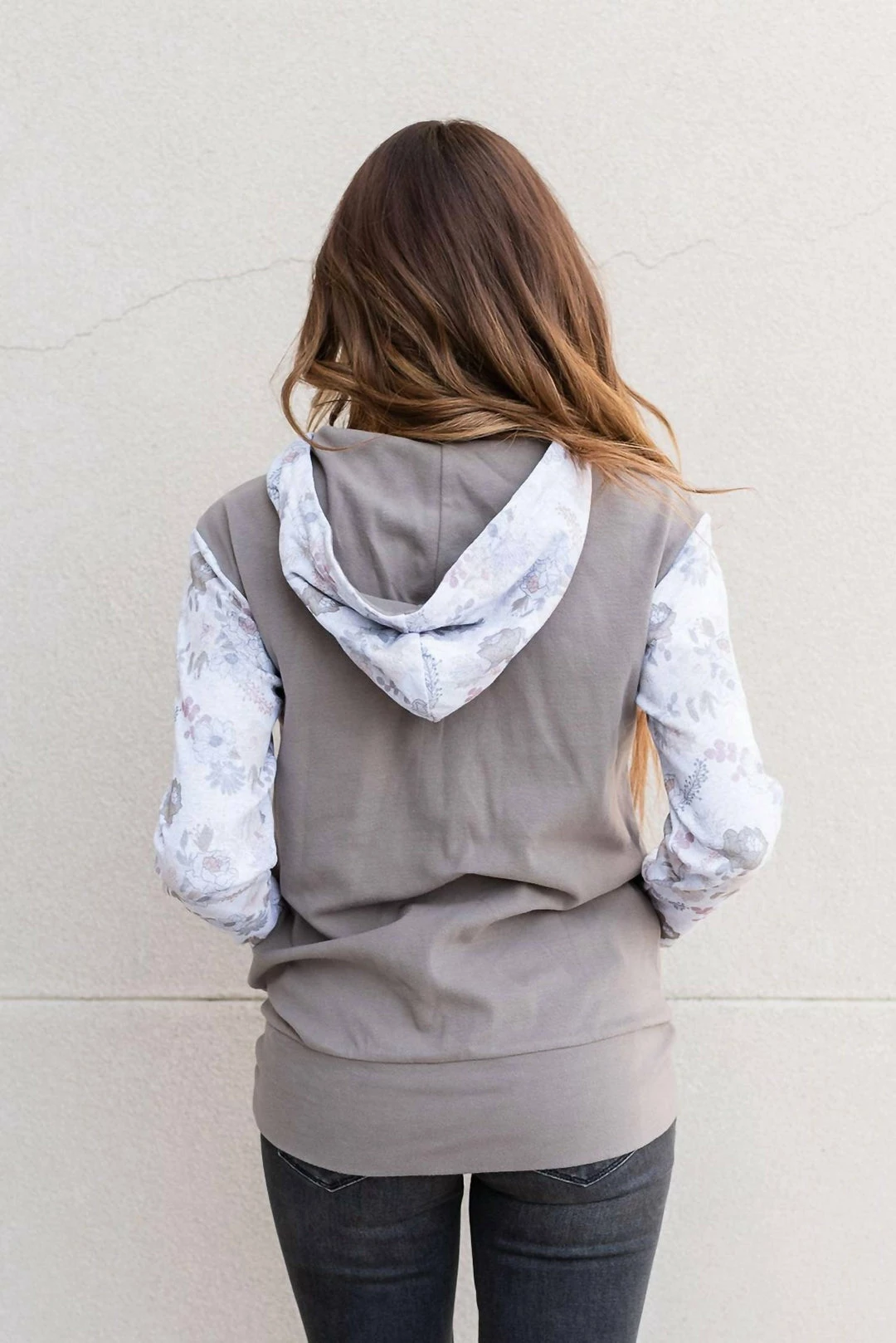 The stretchy fabric provides triple stretch and TTS for a slim fit, but size up for a looser, more relaxed fit. Finding paradise has all the classic features of a hoodie – kangaroo pocket, ribbed cuffs and hem, and an ampersand on the chest. But what really sets this hoodie apart are its intricate floral details on the sleeves and back.Triple stretchNursing friendly