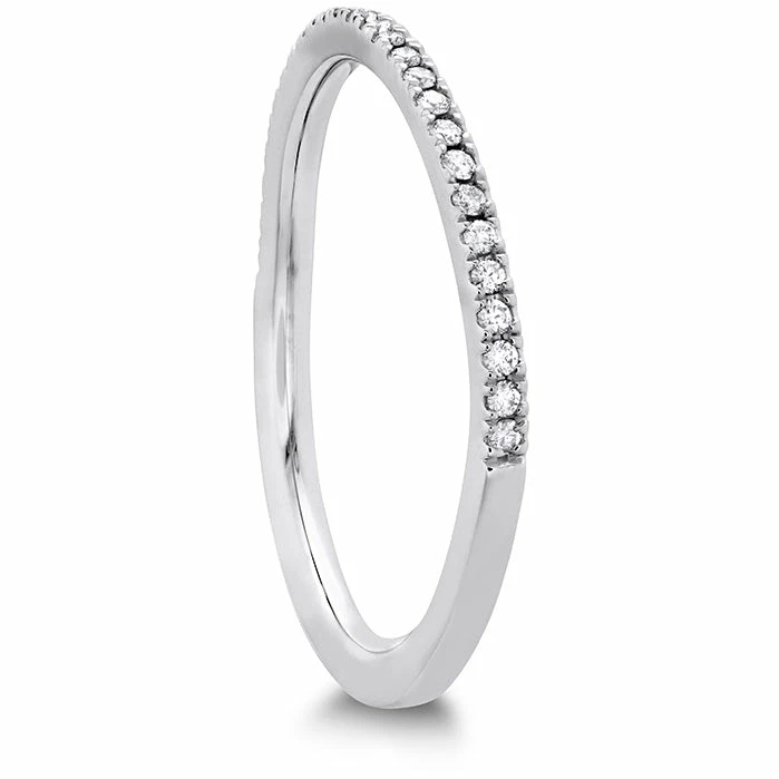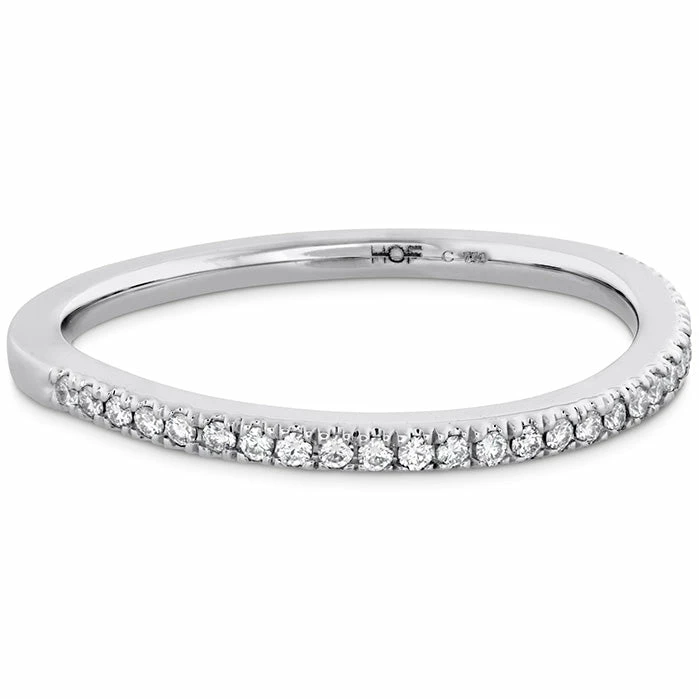 This diamond band has a subtle curved designed that perfectly complements the Brielle Engagement Ring or could stand alone as a statement piece.