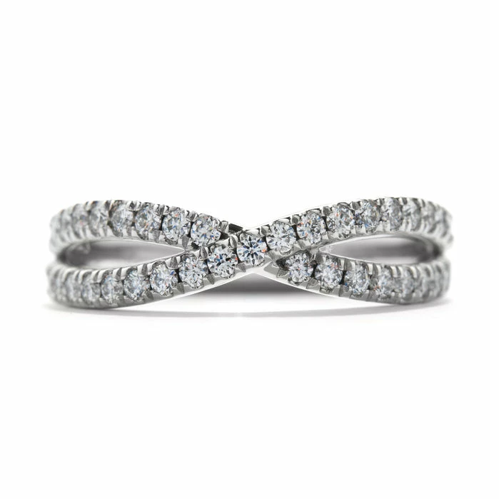 A stunning diamond wedding band with a delicate twist of Hearts On Fire diamonds is perfect on its own or paired with our Envelop Engagement Ring.