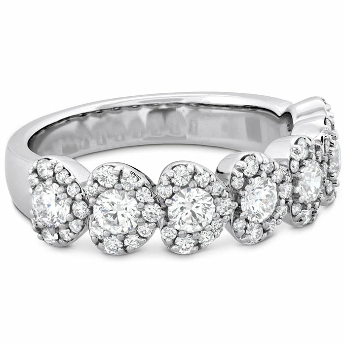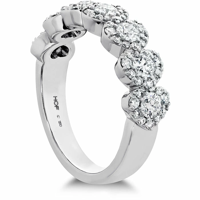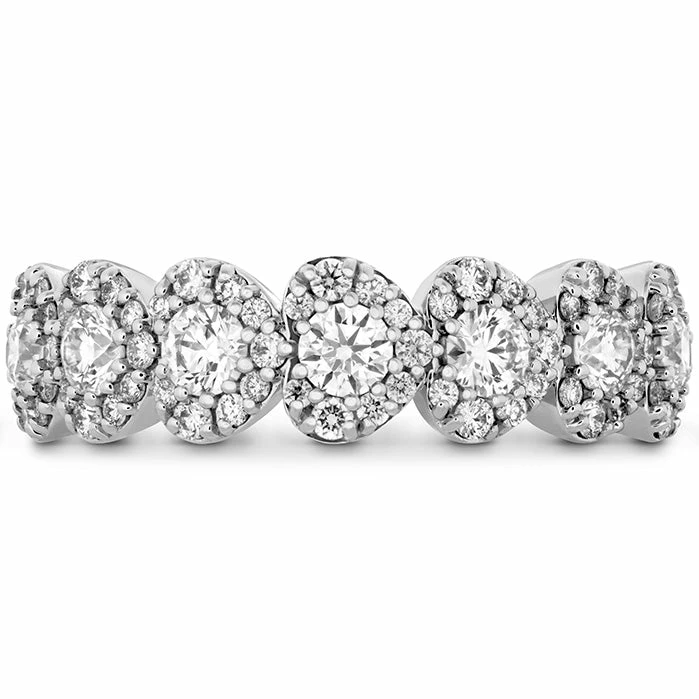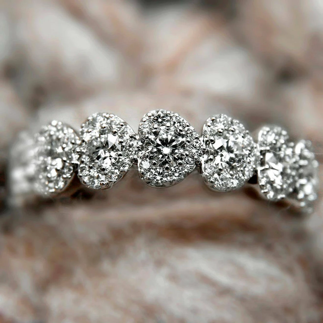 A truly unique design of round diamonds creates the illusion of heart shaped diamonds in this beautiful diamond band. A perfect choice to show your everlasting love, this popular ring style dazzles with sparkle.