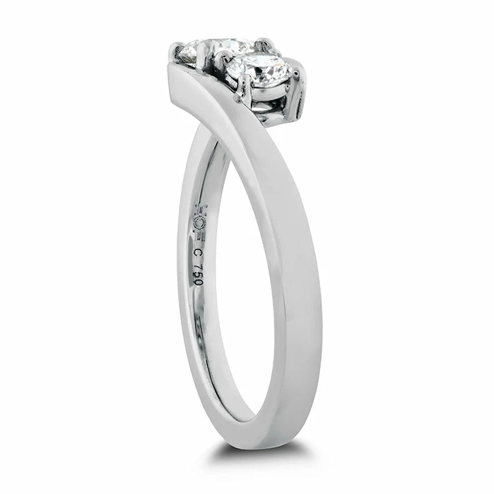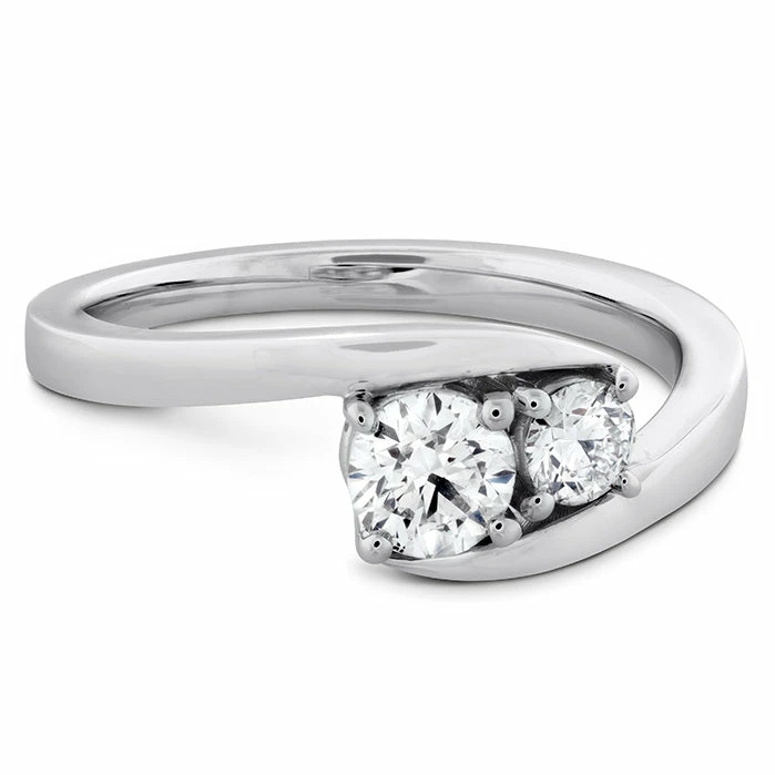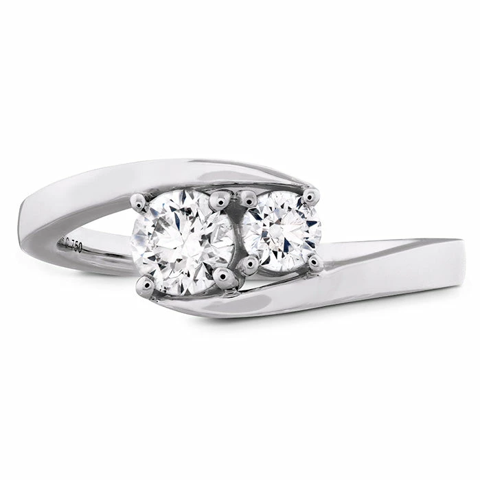 If you love a one stone ring but want something extra, this is the perfect ring for you. This exquisite ring style has two perfectly cut diamonds surrounded by a metal band for a radiant display of love.