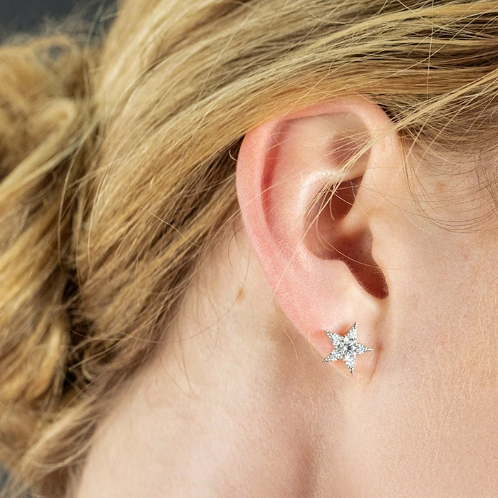 Update your wardrobe with these fanciful star earrings! These Hearts On Fire diamond stud earrings work well with any outfit.