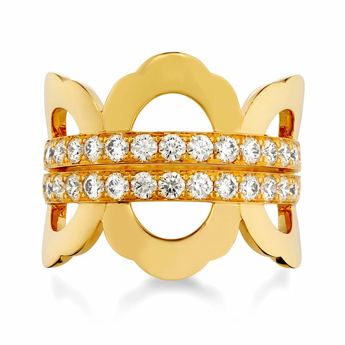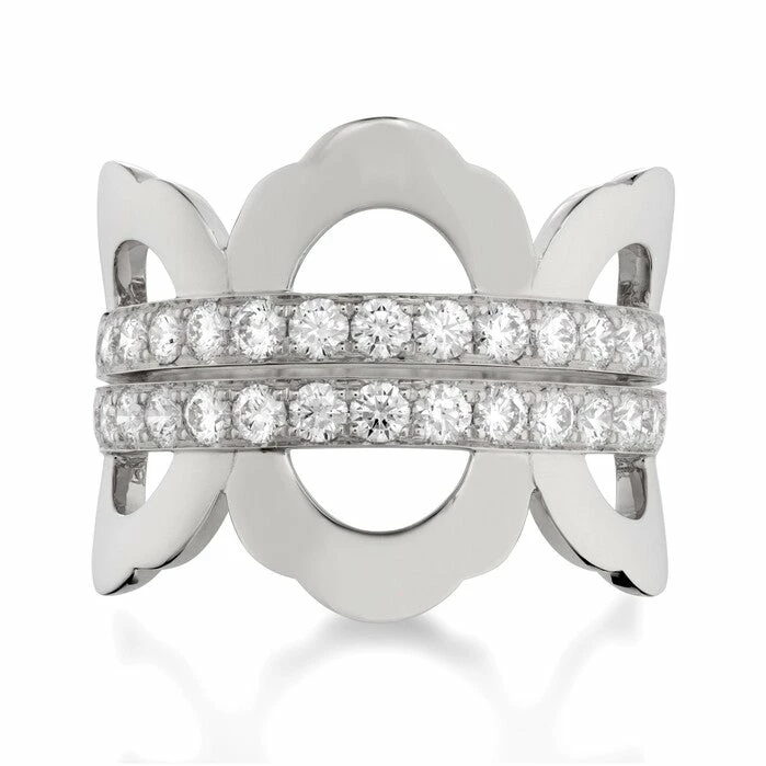 The Lorelei Right Hand Ring, a new design for Summer 2013, is a modern, metal intensive design that is both feminine and fashion forward. Featuring two rows of perfectly cut diamonds and the signature scalloped edging of the Lorelei Collection, this beautiful right hand ring can truly be worn any day.
