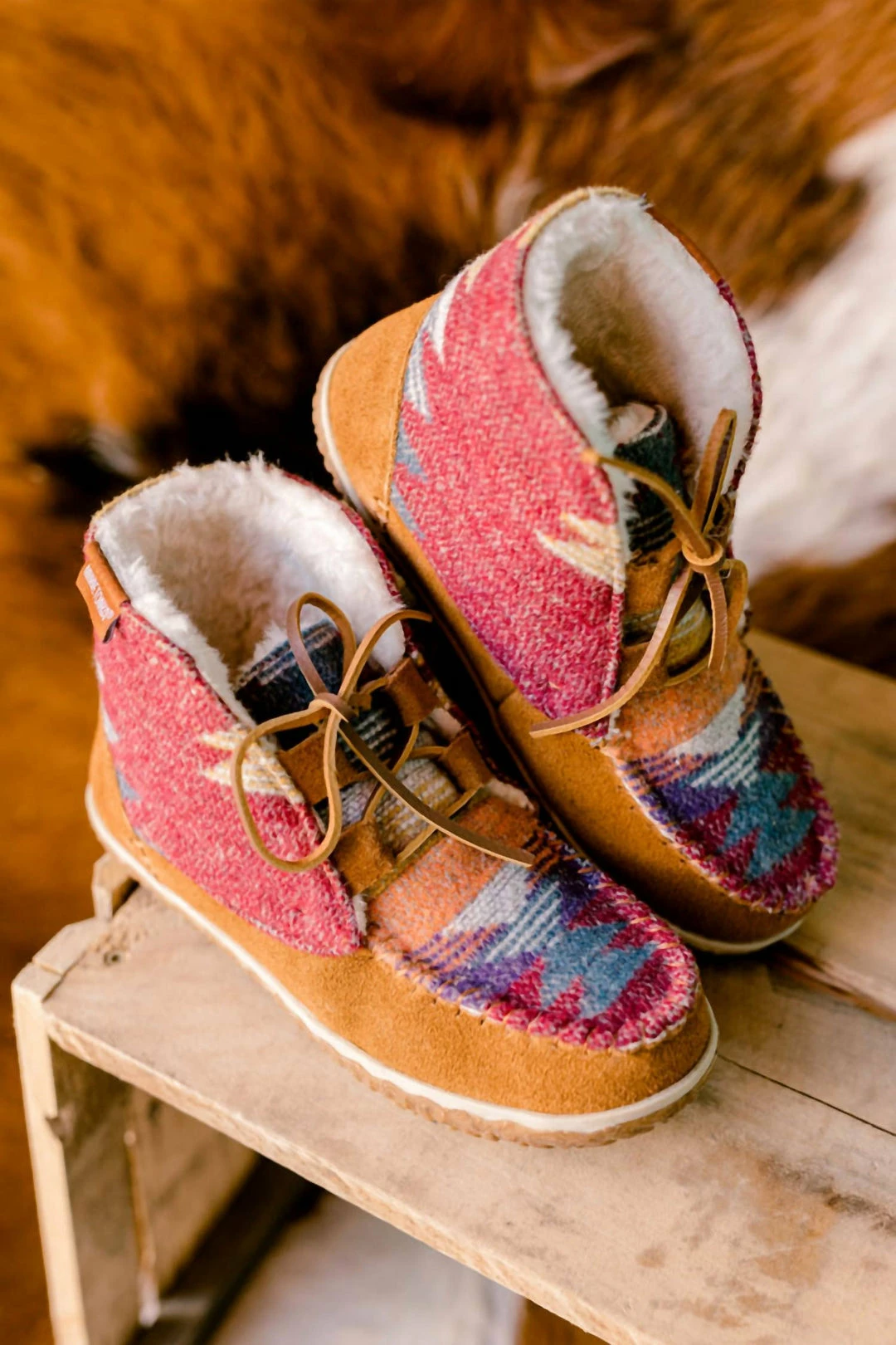 Sizing Suggestion – Wear true to size or if you are between sizes we recommend sizing down.ΓΒ Brianne typically wears a 7.5 and would purchase a size 7.Made of Ragg Wool & Genuine Suede.Pile lining.Heavily Treaded Rubber Sole for Traction.Great for both, indoor and outdoor wear.Rawhide Laces.