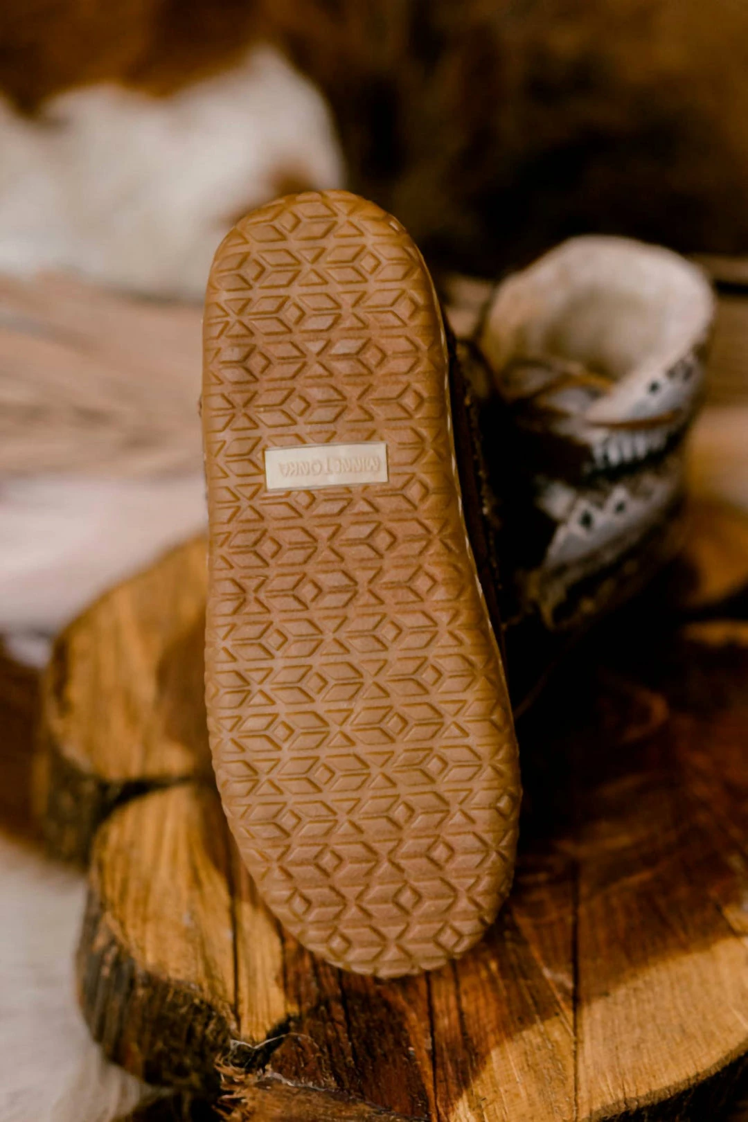 Sizing Suggestion – Wear true to size, or if you are between sizes, we recommend sizing down.ΓΒ ΓΒ Brianne typically wears a 7.5 and would purchase a size 7.Made of Ragg Wool & Genuine Suede.Pile lining.Heavily Treaded Rubber Sole for Traction.Great for both, indoor and outdoor wear.Rawhide Laces.